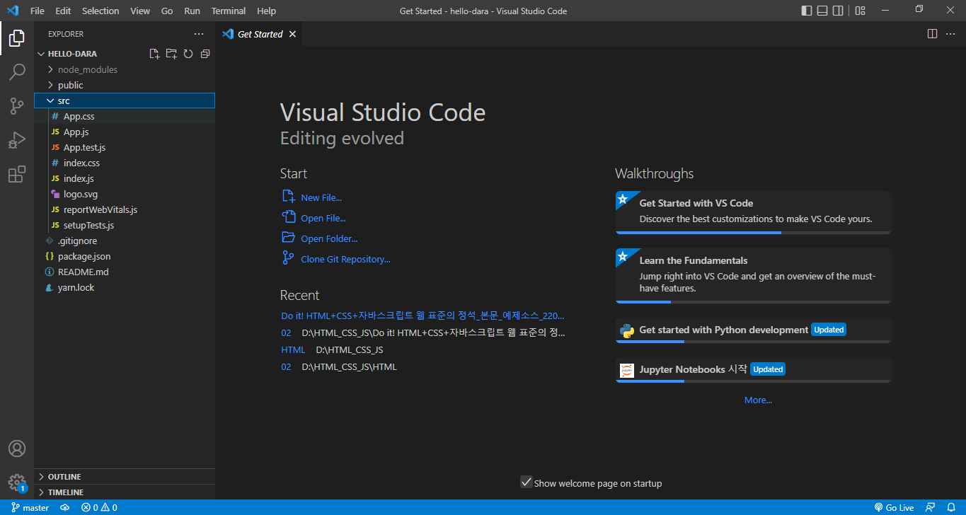 본격적으로 React에 대해서 배우기 전에 Visual Studio Code를 통해 프로젝트를 생성하는 방법에 대해 알아보겠습니다. 프로젝트 생성 시 만들어진 프로젝트의 폴더와 파일들이 의미하는 바도 함께 배워보겠습니다.