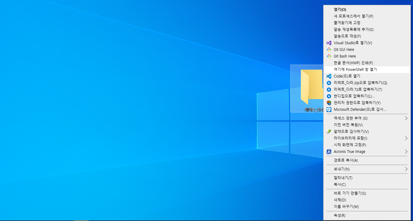 🛠 프로젝트 작업에 사용할 폴더를 만듭니다. 폴더를 Shift + 우클릭 후 PowerShell 터미널 열기를 클릭합니다.