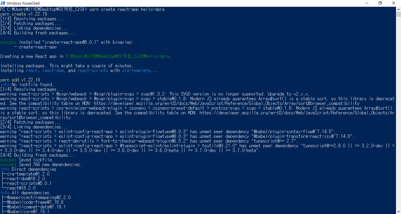 🛠 yarn create react-app <프로젝트 명>을 입력합니다
