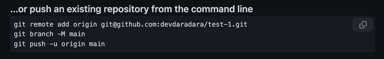 - 예를 들어 깃허브 계정이 devdaradara이고, 저장소 이름이 test-1이면 주소가 https://github.com/devdaradara/test-1